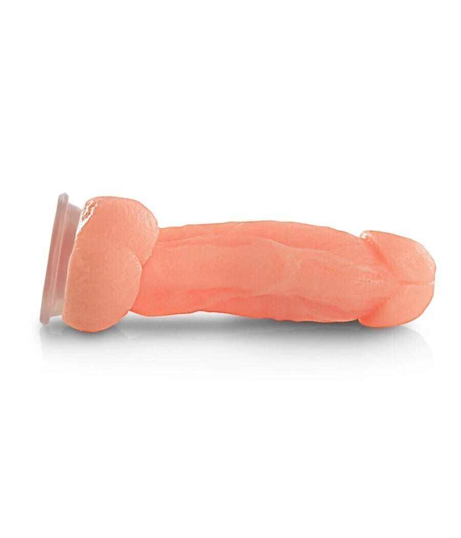 Espectacular estimulador realistico de apariencia natural fabricado con materiales super suaves simil piel. Posee detalles de venas y testiculos dando una sensacion mas realista