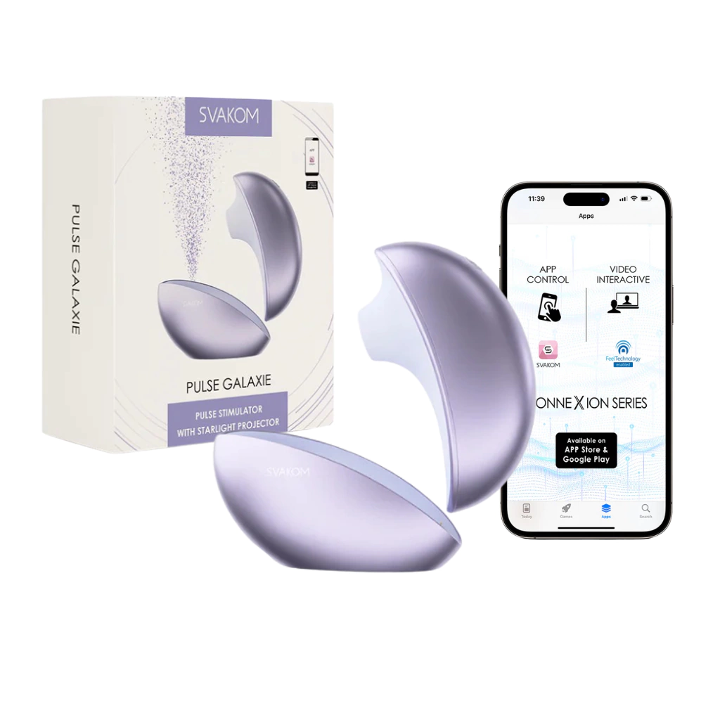 Disfruta del placer sexual a tu manera usando Pulse Galaxie con la aplicación SVAKOM en un dispositivo inteligente. Crea tus propios ajustes con solo tocar con la punta de los dedos, pistas de música, sonidos ambientales o combinando modos preestablecidos. Invita a una pareja a compartir el control de tu juguete desde cualquier distancia e interactúa mediante mensajes de texto o videollamadas.