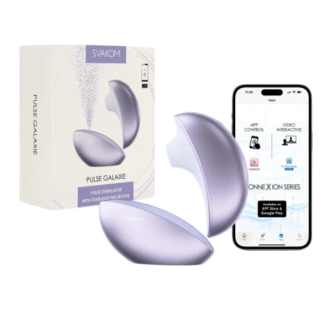Descubra un placer fuera de este mundo con Pulse Galaxie. A diferencia de otros estimuladores del clítoris, empuja y tira aire para crear un efecto de succión, mientras que la base de carga proyecta una luz de estrellas. Explora 5 modos y 5 intensidades de succión más 3 modos de visualización de luz de estrellas. Utilice Pulse Galaxie con la aplicación SVAKOM para jugar de forma personalizable y a larga distancia.